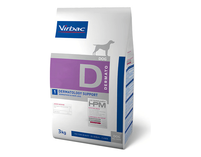VIRBAC HPM Dog Dermatology Support es un alimento medicado para perros indicado para el apoyo de la función dérmica en caso de dermatosis y pérdida excesiva de pelo. Dieta rica en proteínas 34% (con 88% de proteínas animales) y baja en carbohidratos 26,5%. IndicacionesINDICACIONES DIETÉTICAS*• Apoyo de la función dérmica en caso de dermatosis y pérdida excesiva de pelo.OTROS USOS• Problemas inflamatorios de la piel, dermatitis, dermatitis atópica.• Prurito.CONTRAINDICACIONES• Enfermedad renal crónica (ERC).